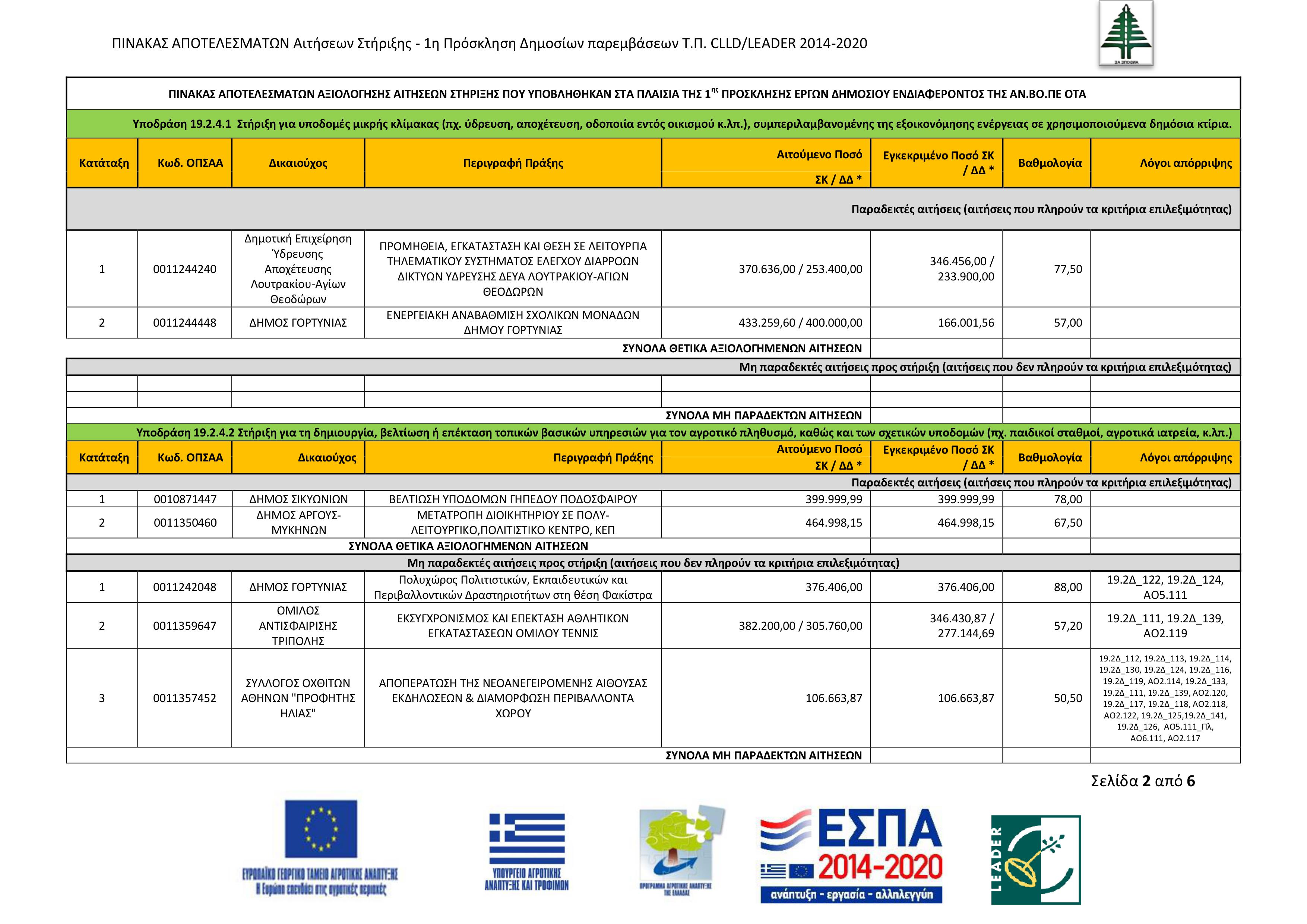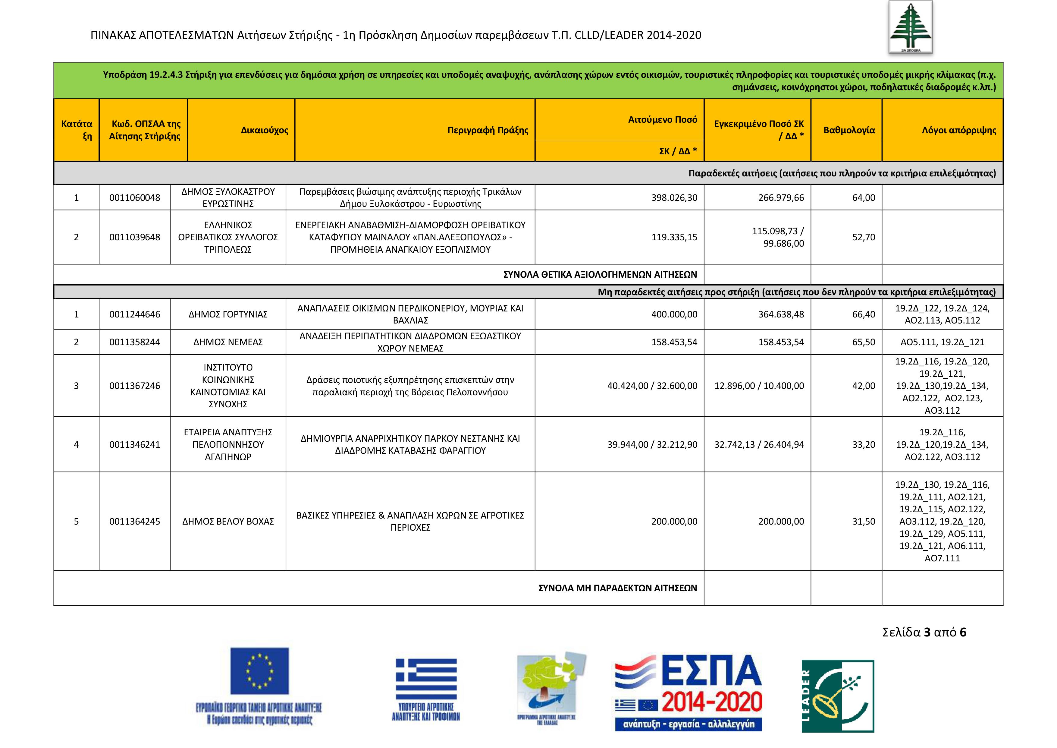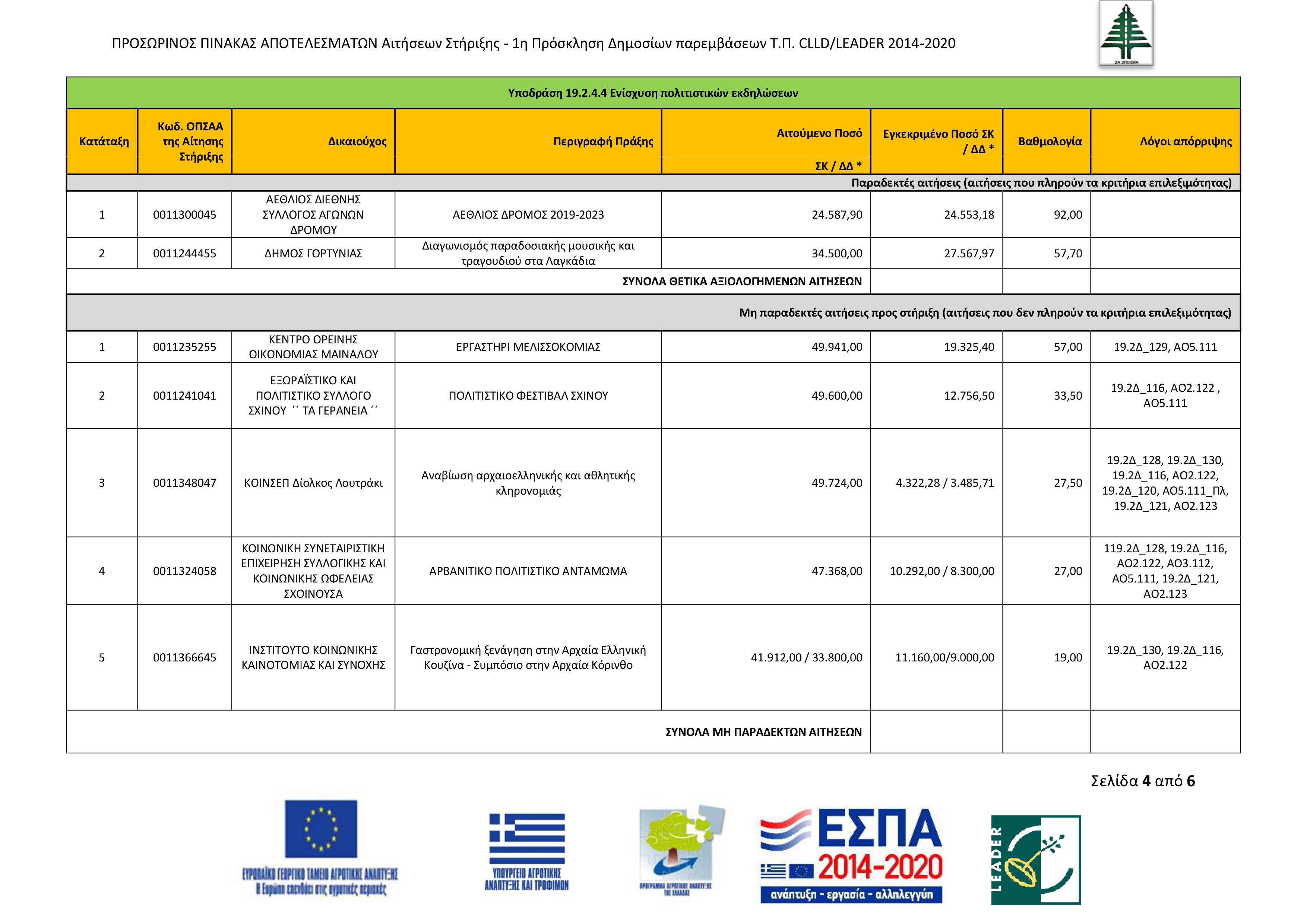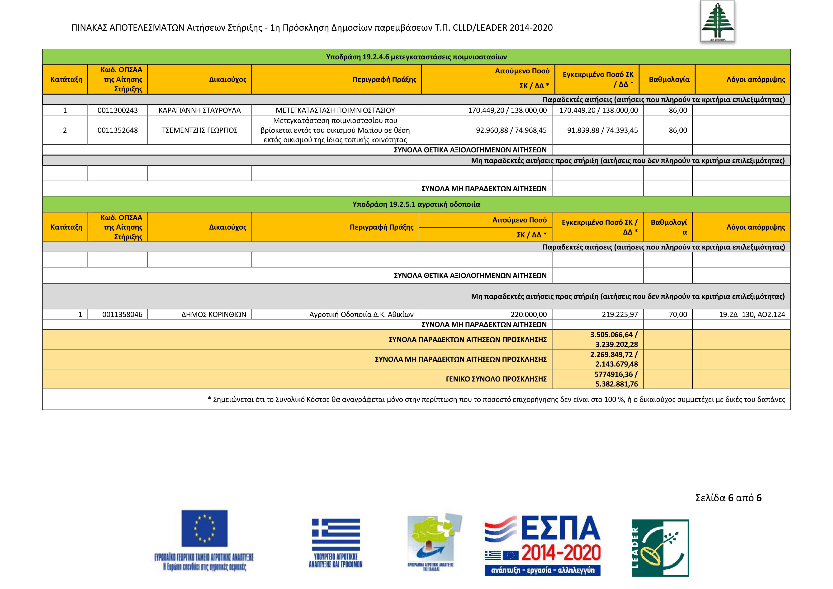 Ακολουθούν οι προσωρινοί ΠΙΝΑΚΕΣ ΑΠΟΤΕΛΕΣΜΑΤΩΝ ανά υποδράση: